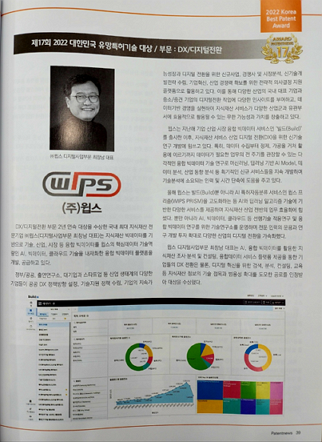 year, WIPS won the ‘17th 2022 Korea Promising Patent Technology Award (DX